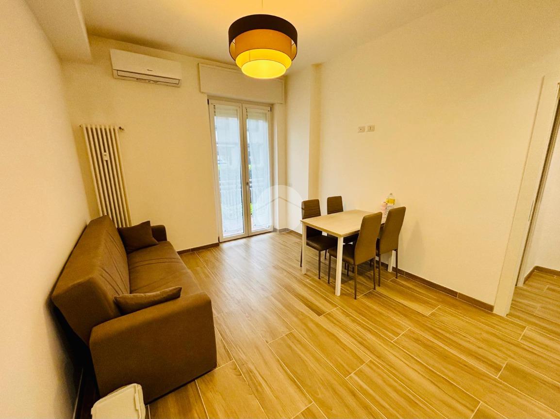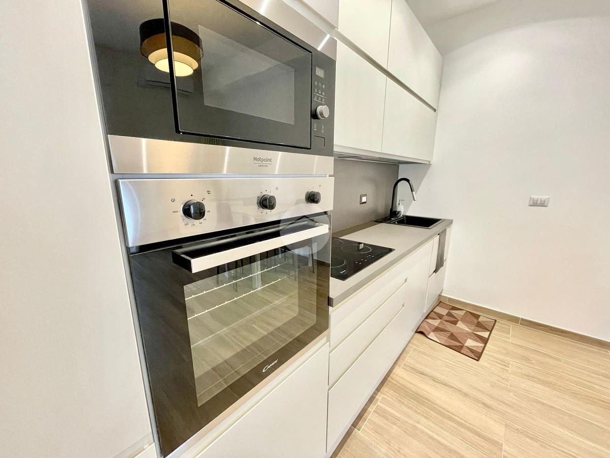 L'appartamento è composto da un luminoso soggiorno con zona pranzo e cucina a vista che si affaccia su un balcone privato, ideale per momenti di relax all'aperto. La zona notte è caratterizzata da una spaziosa camera matrimoniale e da un bagno finestrato con box doccia e attacchi per la lavatrice.