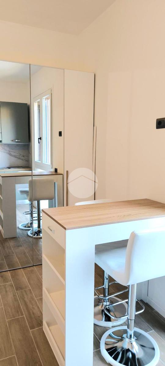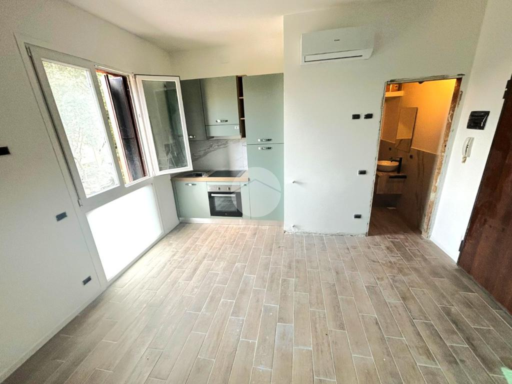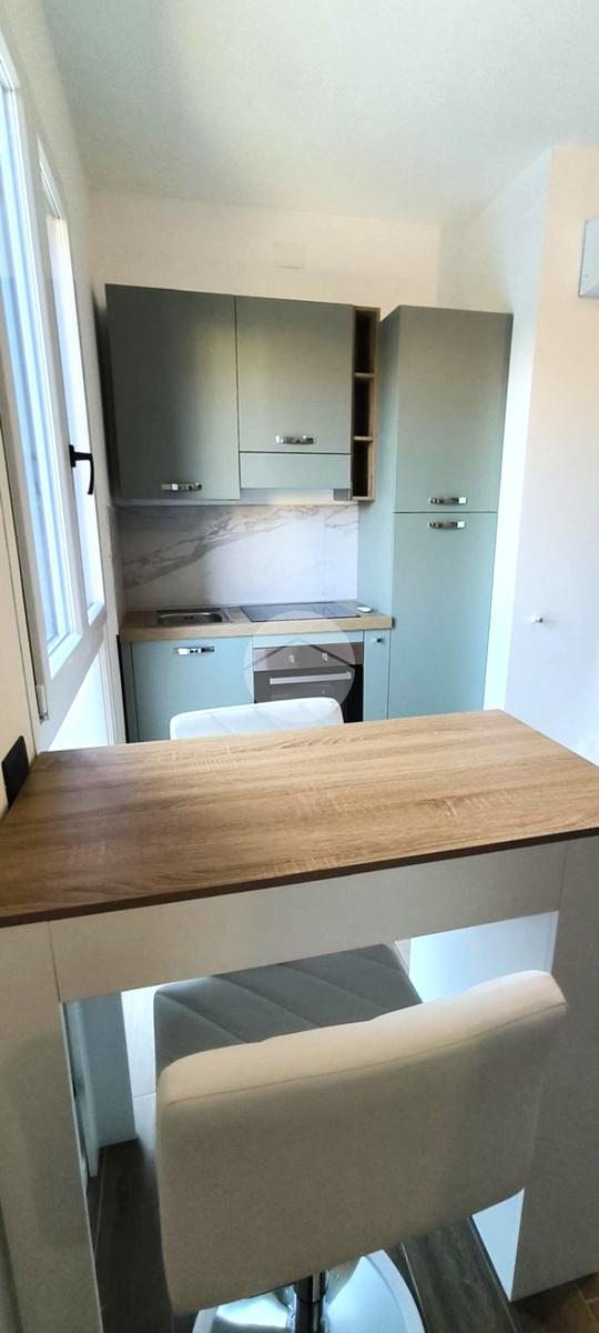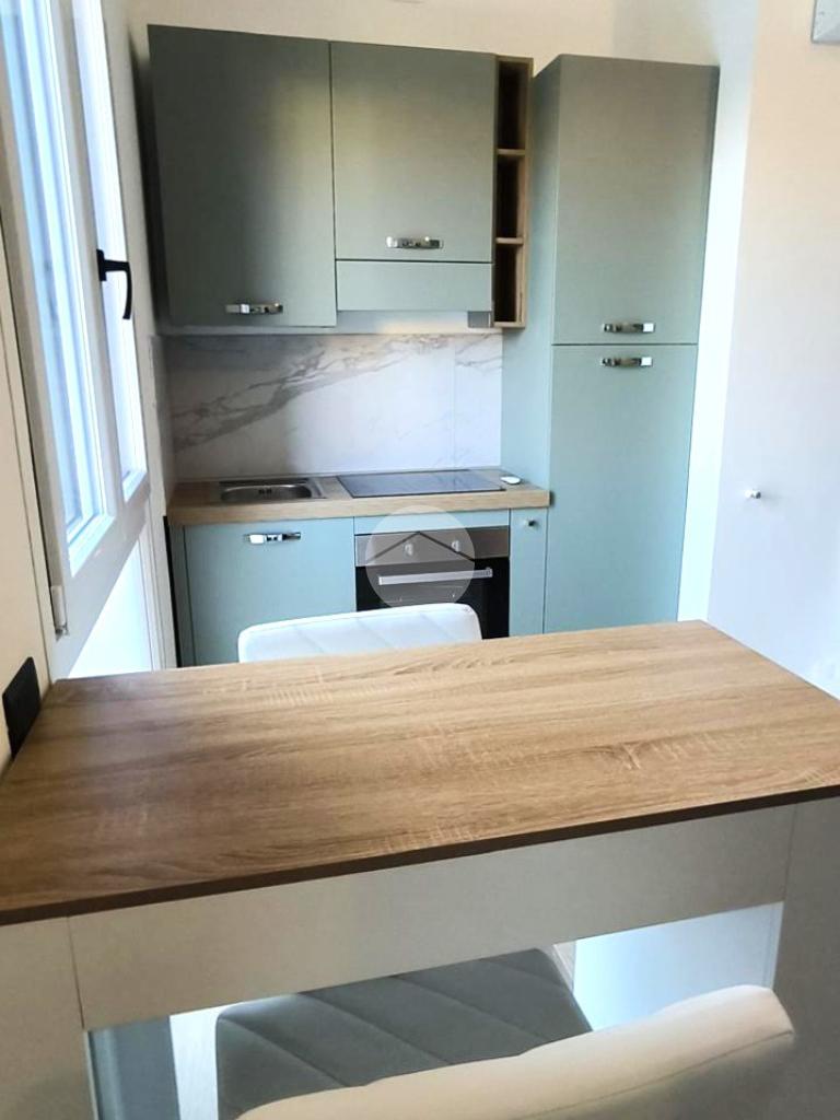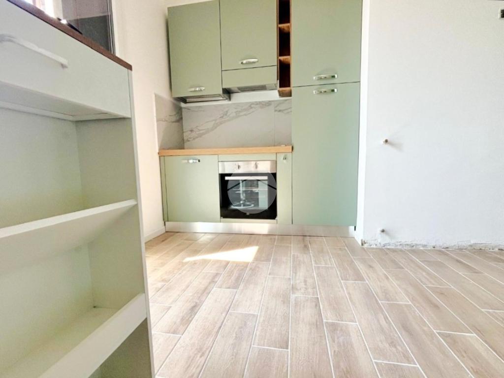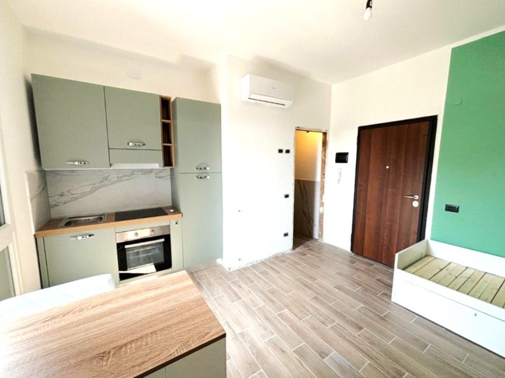L’appartamento è composto da un unico ambiente principale luminoso, con cucina a vista moderna e funzionale, dotata di piano cottura ad induzione, forno e spazio per la zona pranzo. La zona giorno/notte è arredata con divano letto e armadiatura su misura.