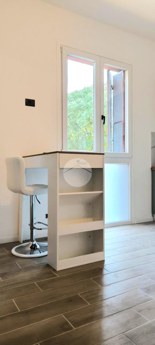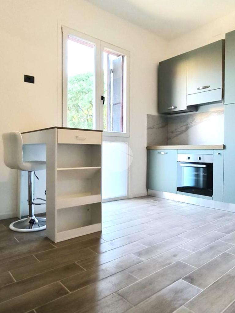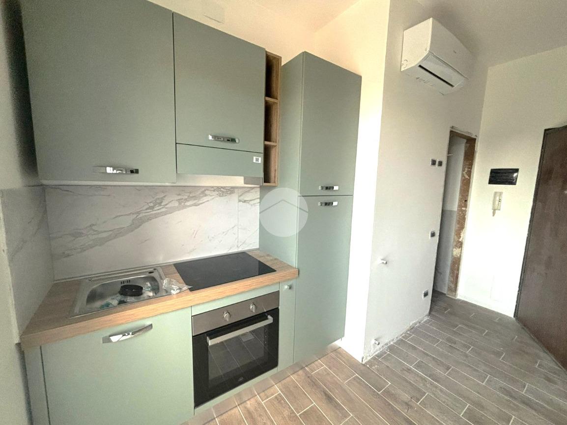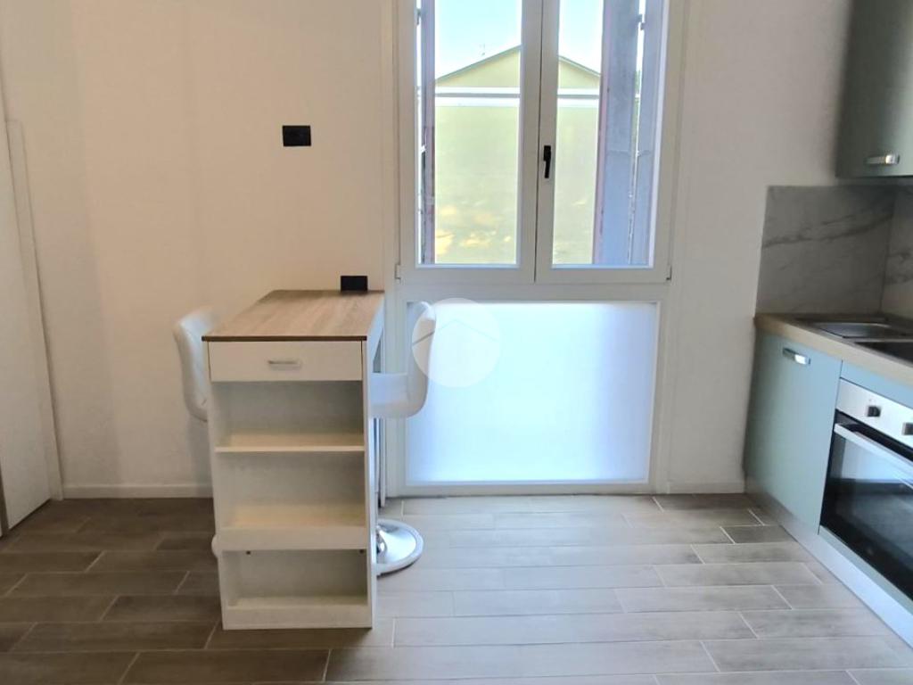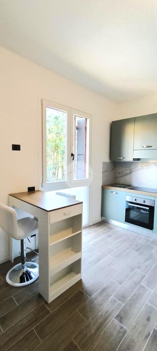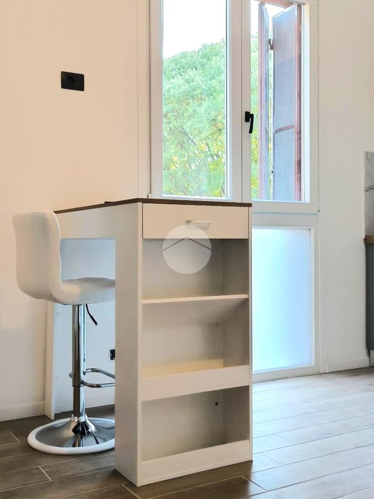L’appartamento è composto da un unico ambiente principale luminoso, con cucina a vista moderna e funzionale, dotata di piano cottura ad induzione, forno e spazio per la zona pranzo. La zona giorno/notte è arredata con divano letto e armadiatura su misura.