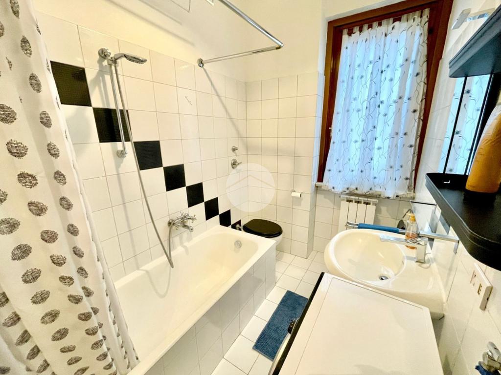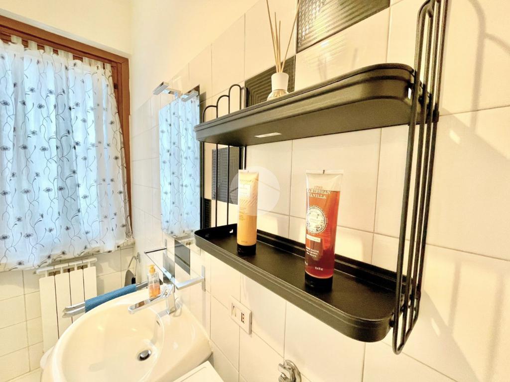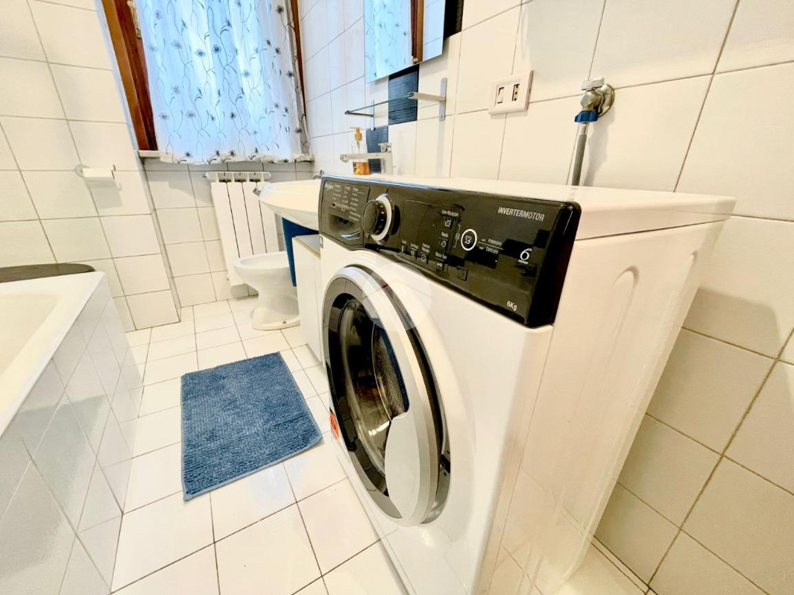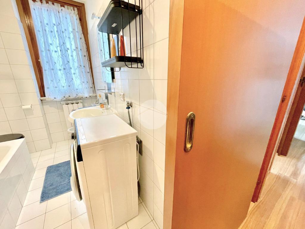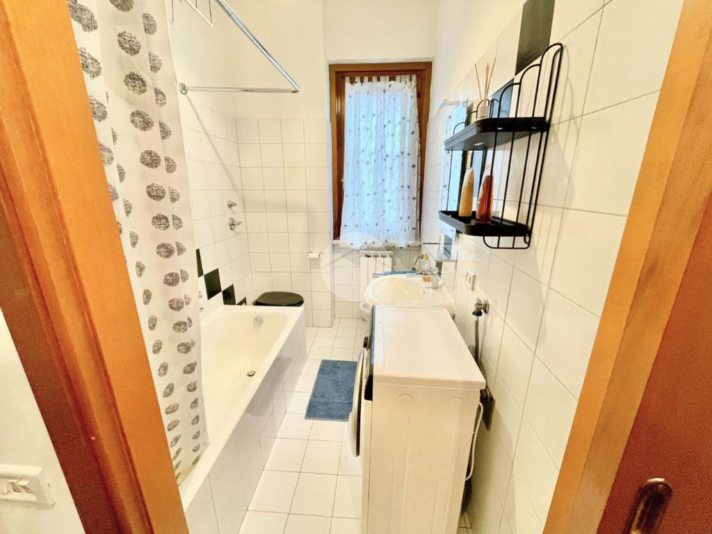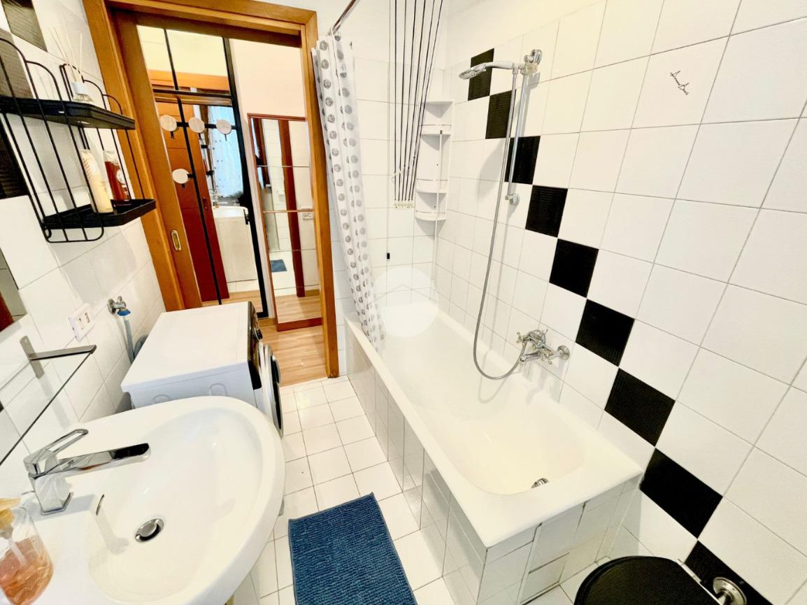 L'appartamento è composto da un ampio e luminoso soggiorno, ideale per momenti di relax e convivialità. La cucina, separata con porta a soffietto e abitabile, è parzialmente rinnovata e offre tutti gli elettrodomestici nuovi. La zona notte è caratterizzata da una spaziosa camera matrimoniale con ampia armadiatura, letto contenitore e split dell'aria condizionata che garantisce un clima ideale in ogni stagione. Il bagno finestrato con porta scorrevole e vasca è funzionale e comprende una lavatrice.