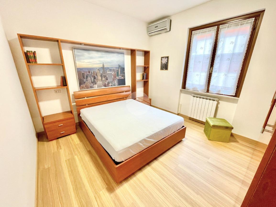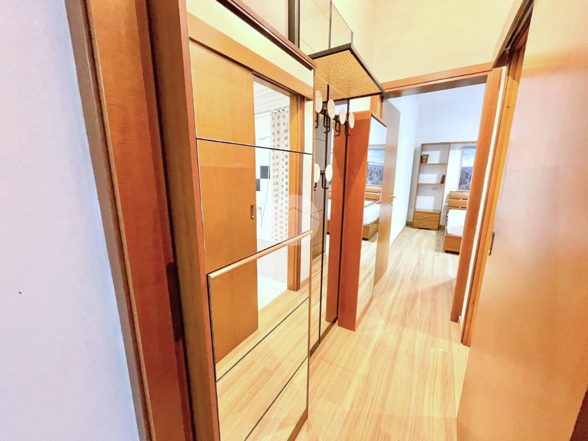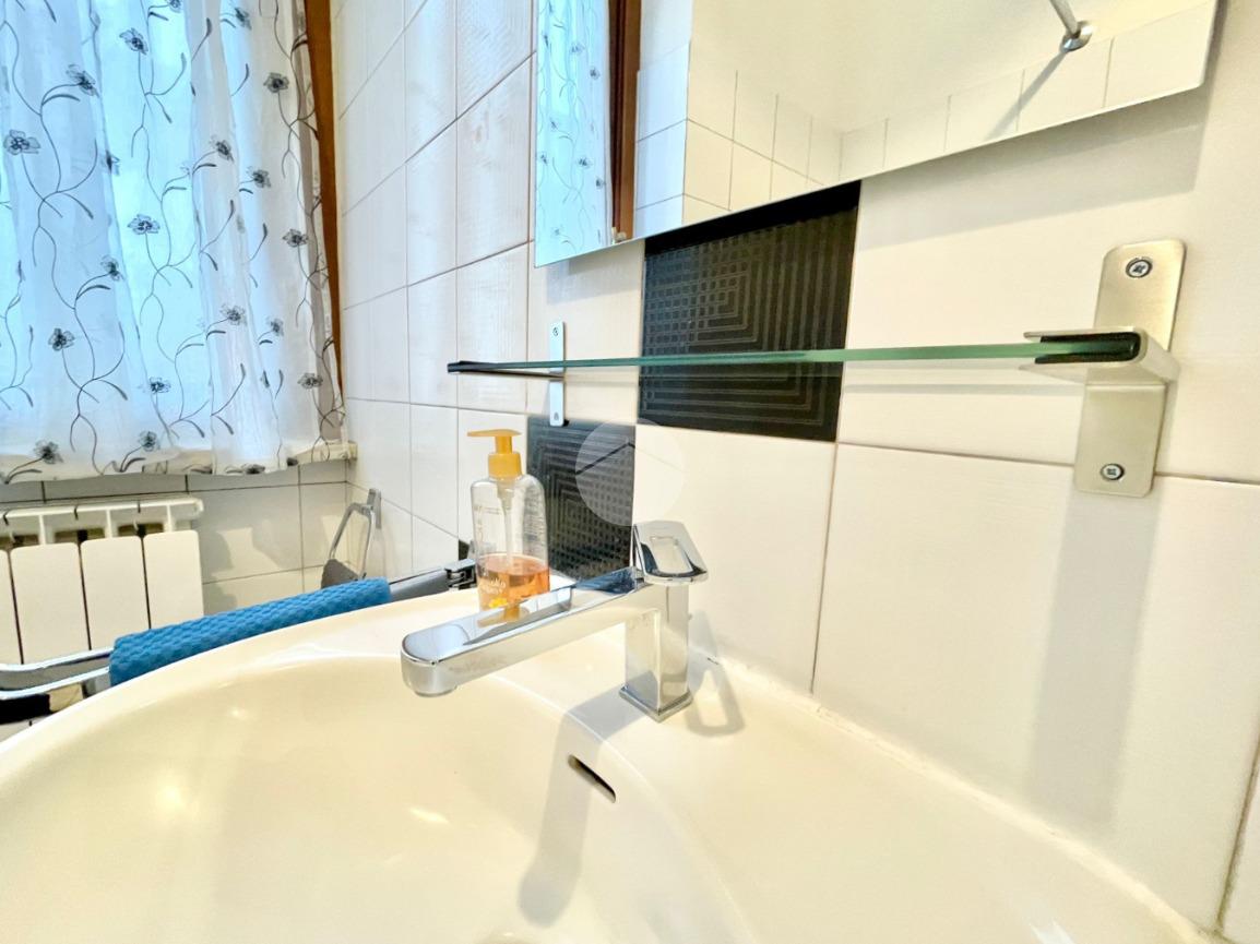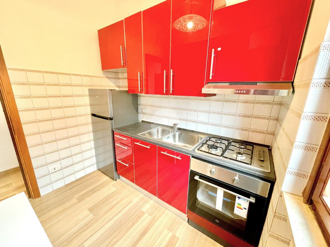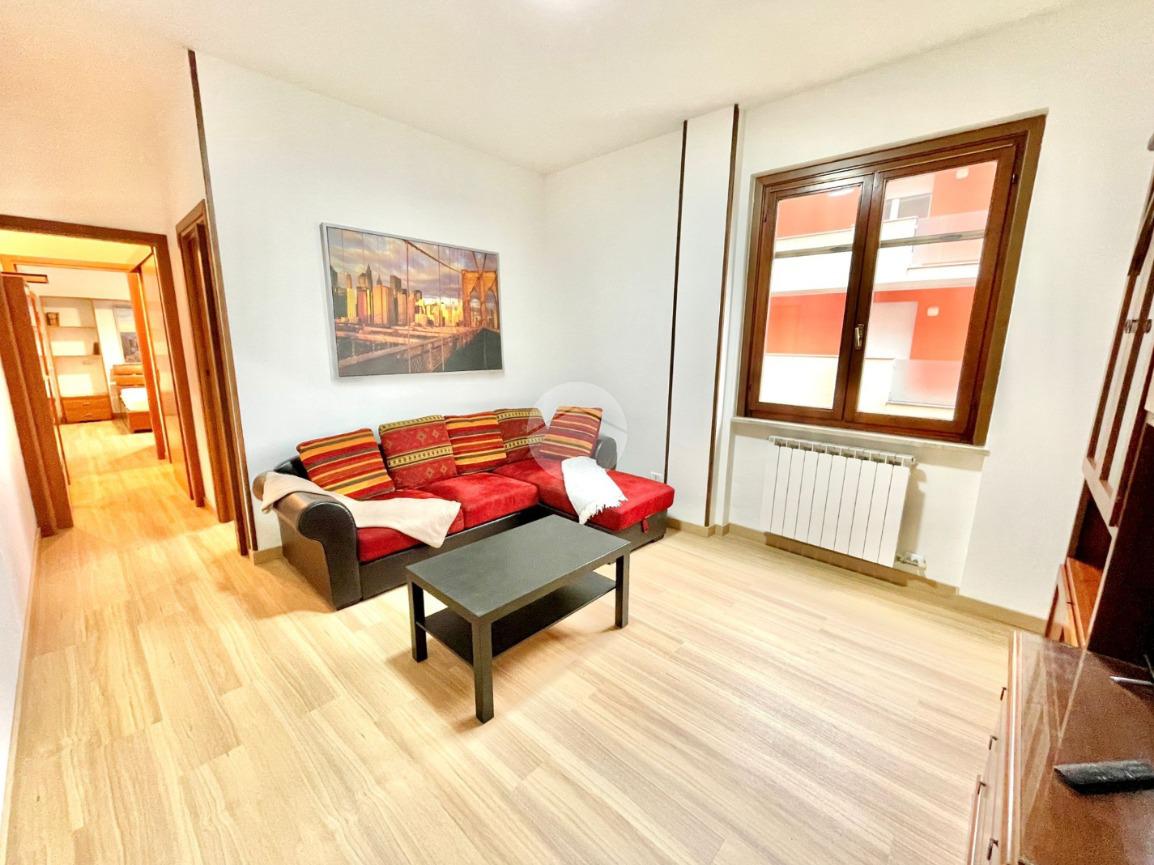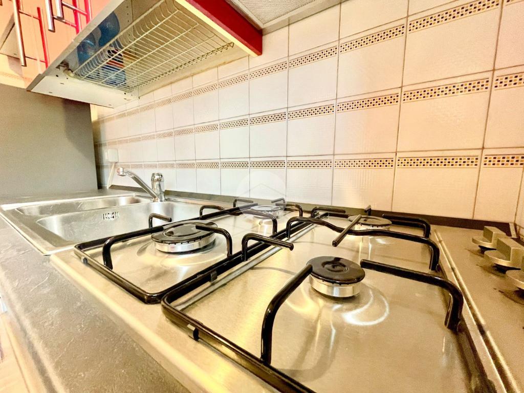 L'appartamento è composto da un ampio e luminoso soggiorno, ideale per momenti di relax e convivialità. La cucina, separata con porta a soffietto e abitabile, è parzialmente rinnovata e offre tutti gli elettrodomestici nuovi. La zona notte è caratterizzata da una spaziosa camera matrimoniale con ampia armadiatura, letto contenitore e split dell'aria condizionata che garantisce un clima ideale in ogni stagione. Il bagno finestrato con porta scorrevole e vasca è funzionale e comprende una lavatrice.