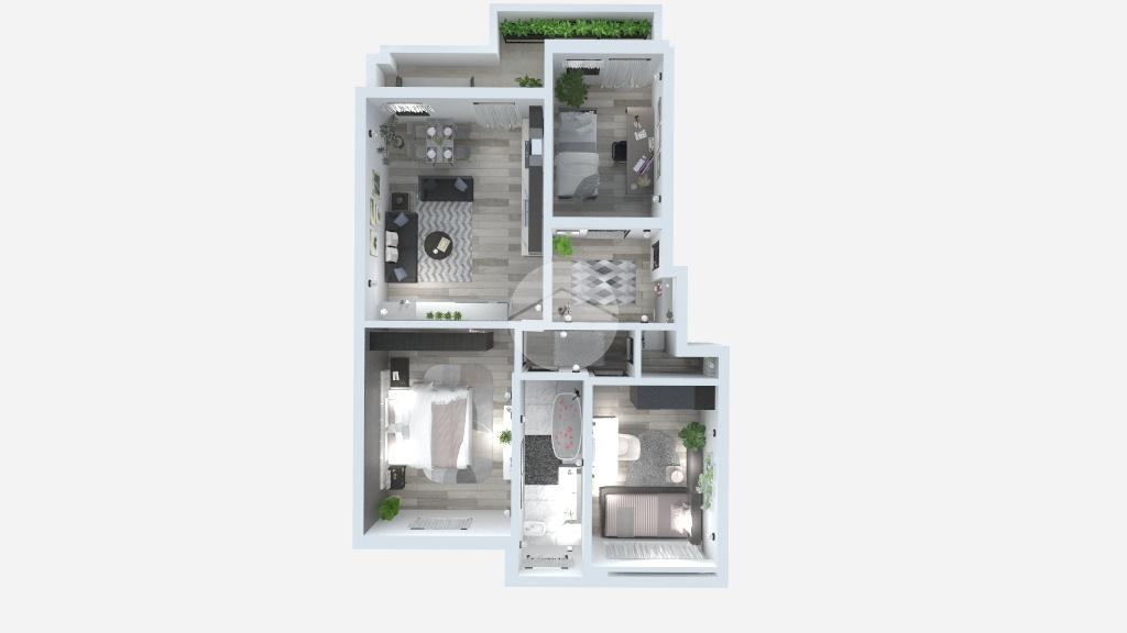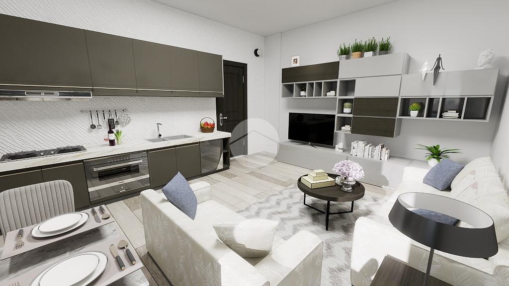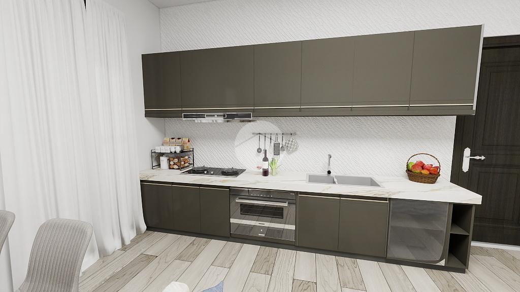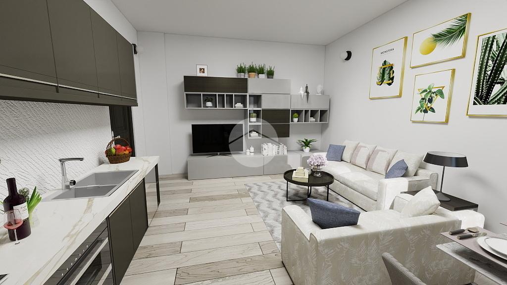 E' composto da ingresso su ampio disimpegno che conduce al soggiorno con cucina a vista e accesso al balcone vivibile. Tramite pratico corridoio si accede alla zona notte composta da tre camere da letto, di cui una camera matrimoniale e due camere singole, e al servizio finestrato con vasca da bagno. Infine un funzionale ripostiglio utilizzato anche come zona lavanderia per ulteriore praticità.