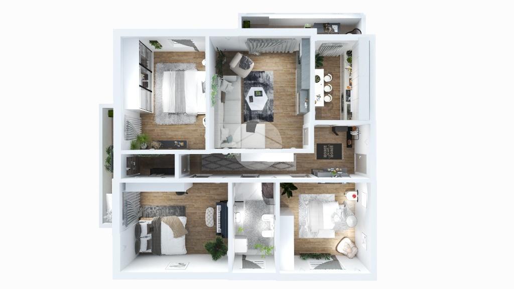 L'appartamento è composto da ingresso che porta al soggiorno luminoso con accesso al primo balcone vivibile, ideale per momenti di relax all'aperto, mentre la cucina rimane separata e abitabile, anch'essa con accesso al balcone. Tramite corridoio si accede alla zona notte caratterizzata attualmente da due ampie camere da letto, da un servizio finestrato con box doccia e da un pratico ripostiglio. Sarà possibile ricavare la terza camera dall'attuale sala da pranzo, con accesso al secondo balcone verandato.