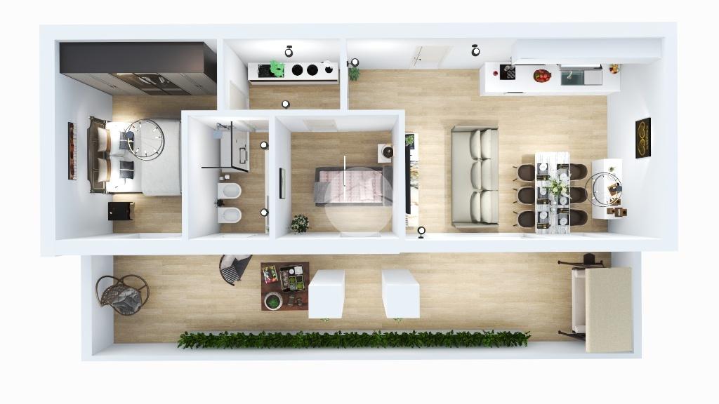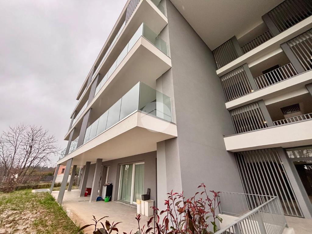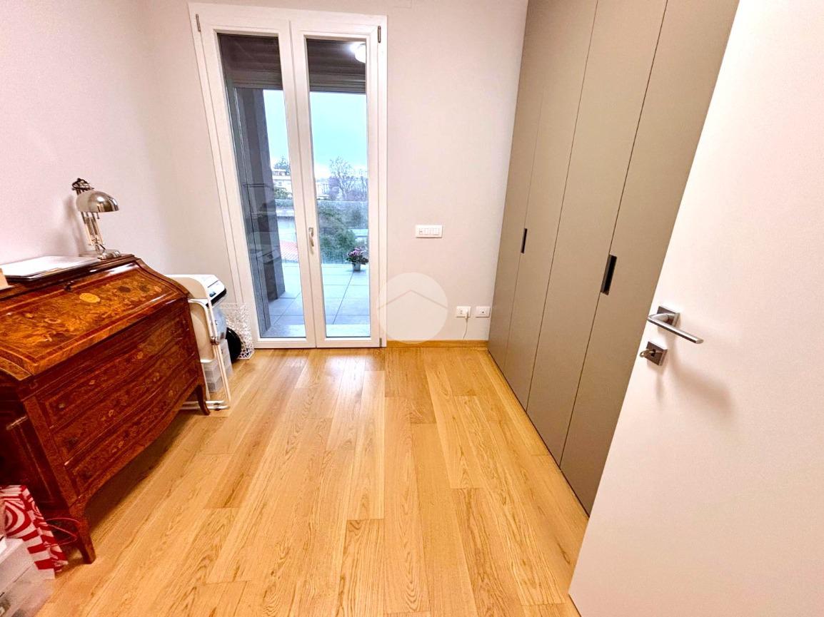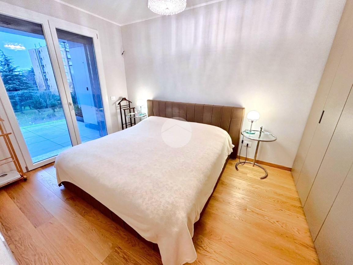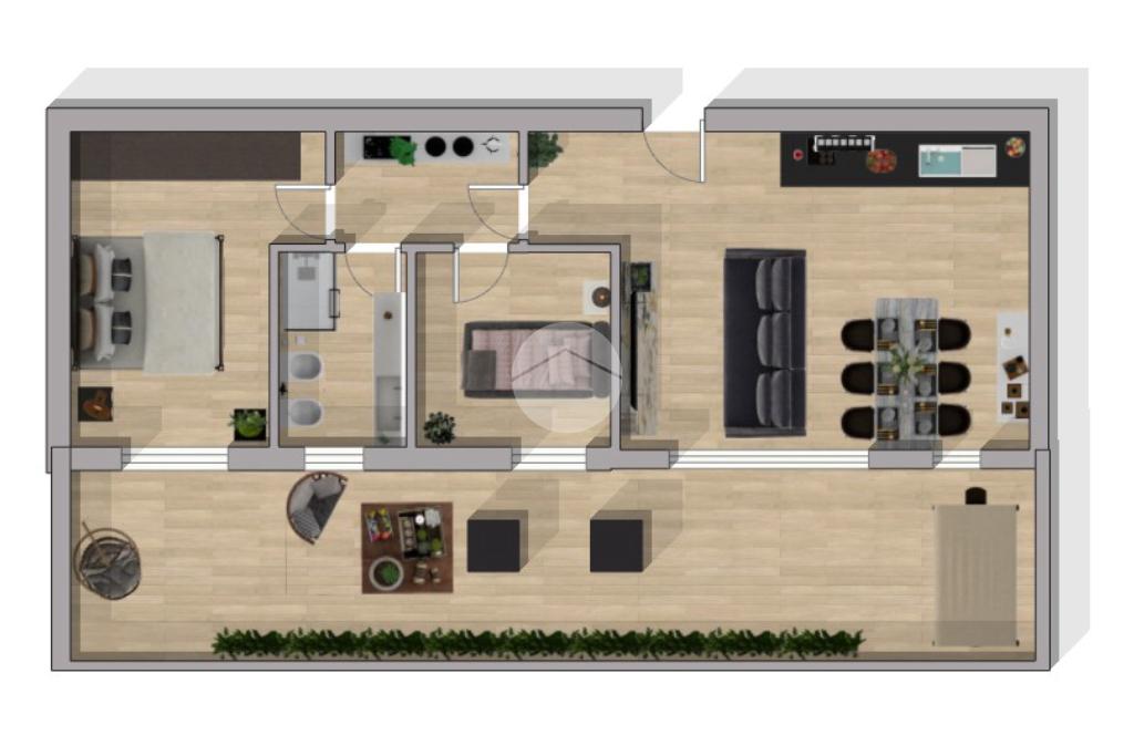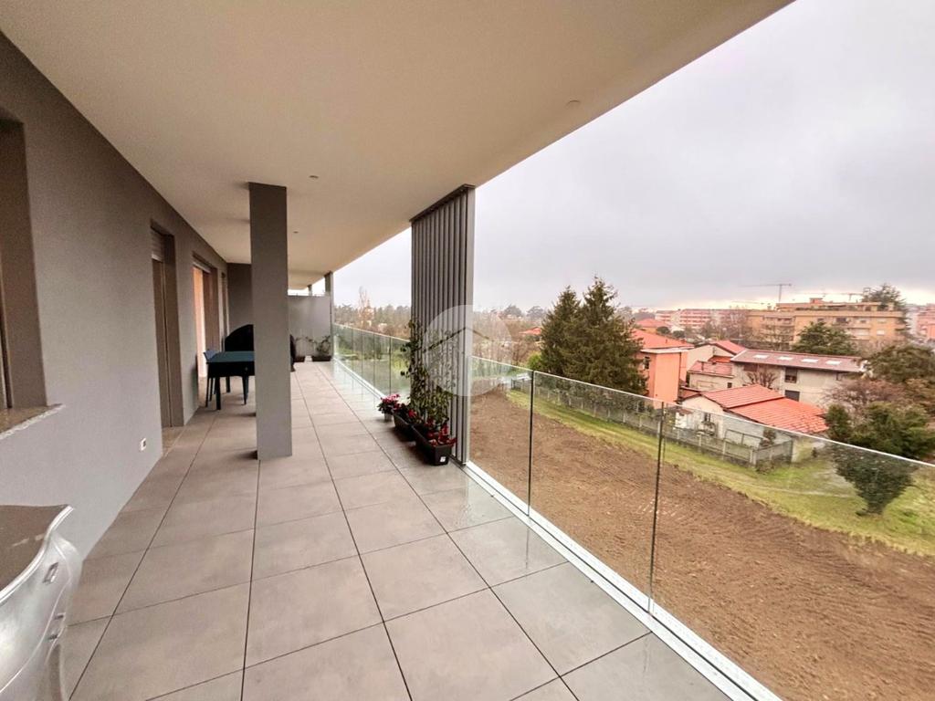 L'appartamento dispone di un ampio salotto con cucina a vista, un ambiente accogliente e luminoso, perfetto per momenti di convivialità e relax. Una vetrata panoramica si apre su un magnifico terrazzo loggiato di circa 40 metri quadrati, con esposizione a ovest, ideale per godere di tramonti suggestivi, pranzi e cene all'aperto. La camera da letto matrimoniale è spaziosa e progettata per garantire il massimo del comfort e della tranquillità. È inoltre presente uno studio versatile, utilizzabile come cameretta, ufficio per smart working o area relax a seconda delle esigenze. Il bagno è elegante e rifinito con materiali di alta qualità, offrendo un tocco di raffinatezza in più.