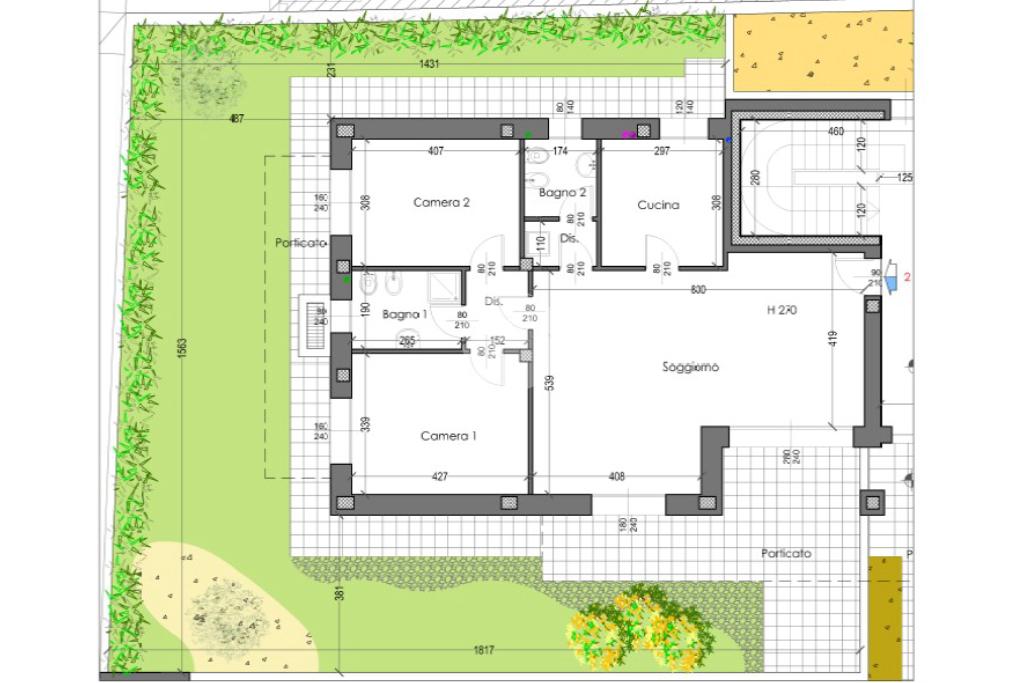 L'Appartamento N. 2 è un trilocale con tripla esposizione situato al piano terra dell'edificio e vanta di un ampio giardino.