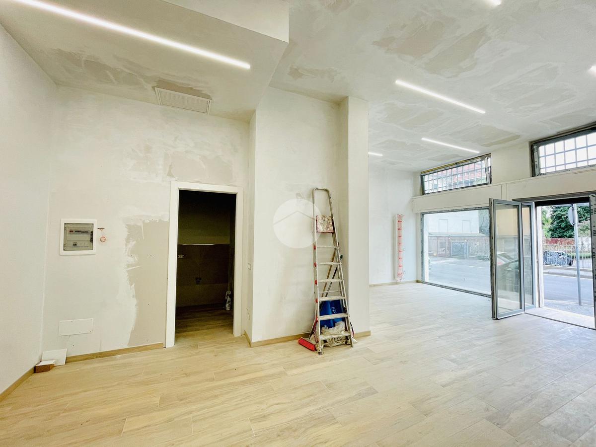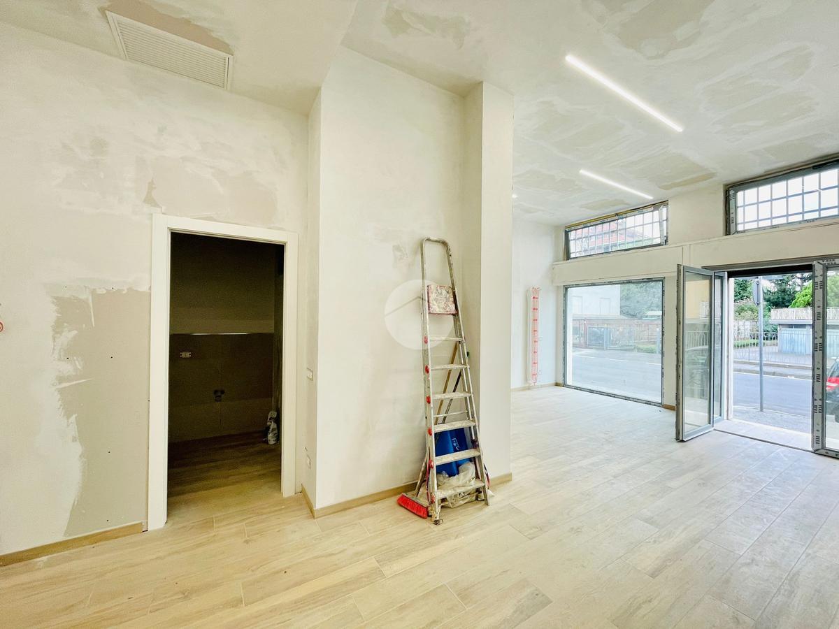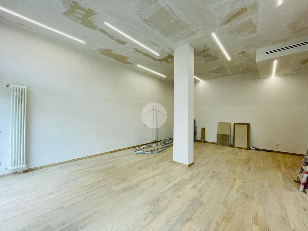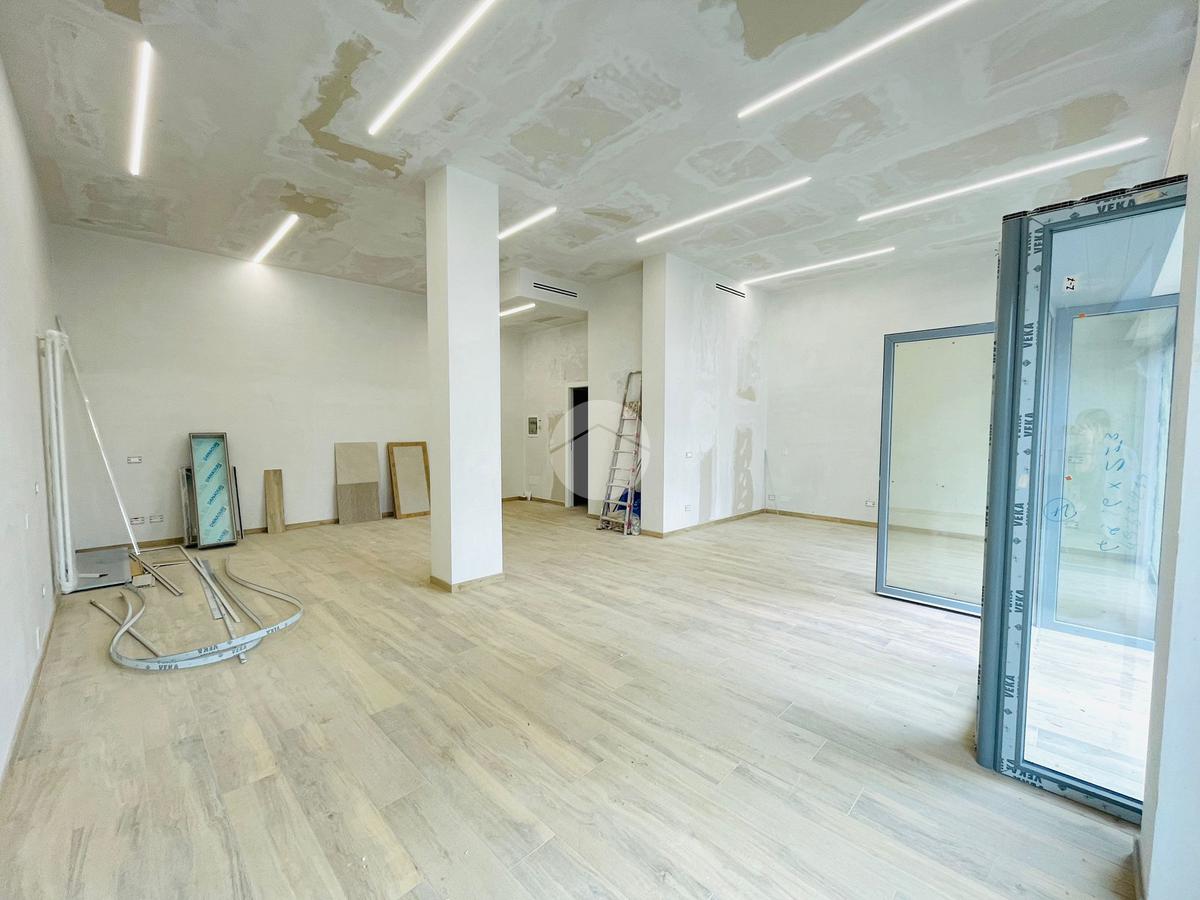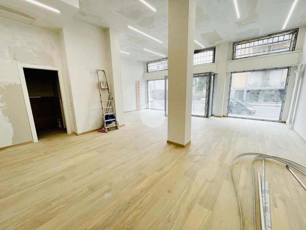 L'immobile, in fase di ristrutturazione, si presenta come un luminoso open space e con un disimpegno si accede ai due bagni, uno per il personale e uno per la clientela con accesso disabili.