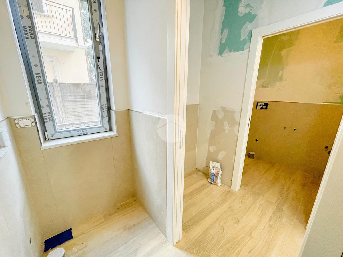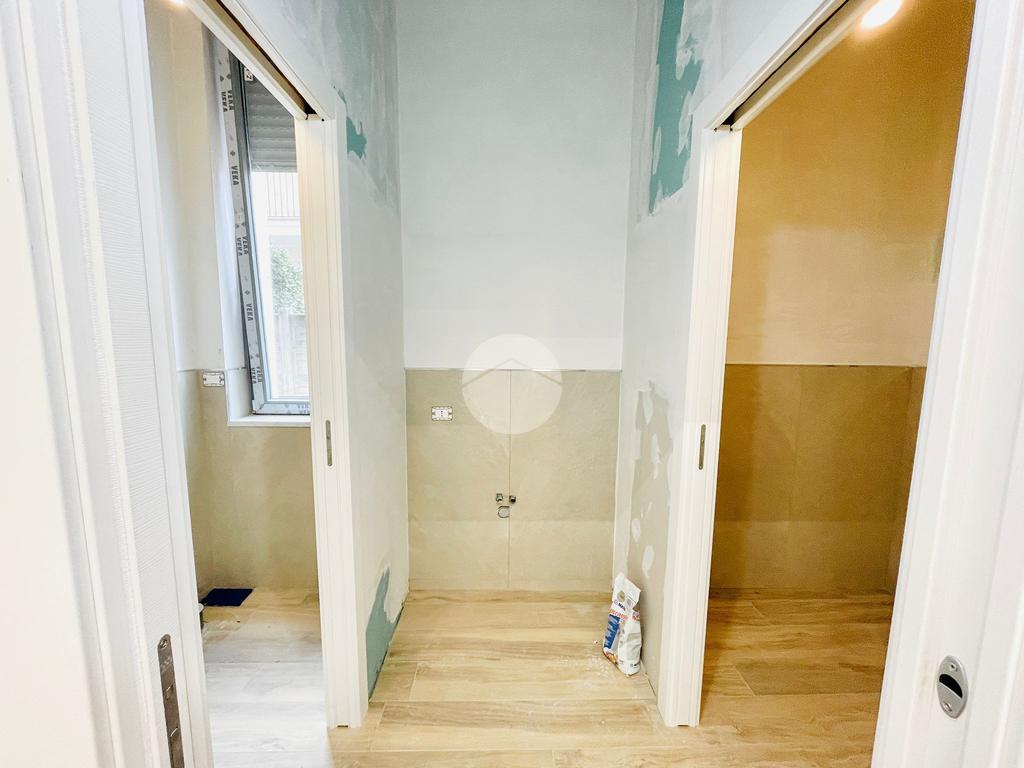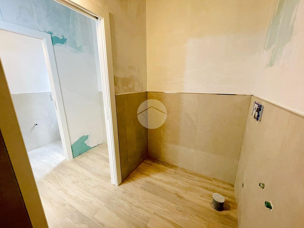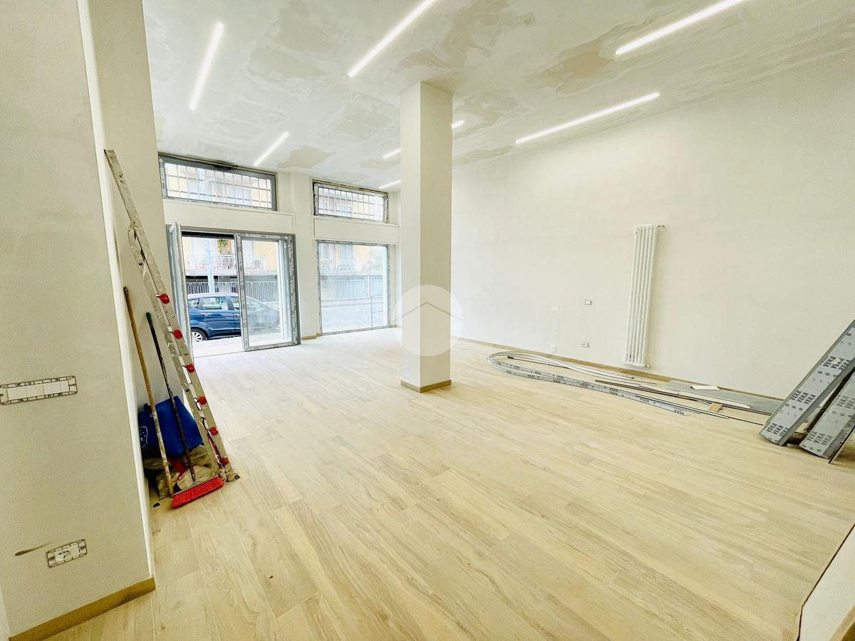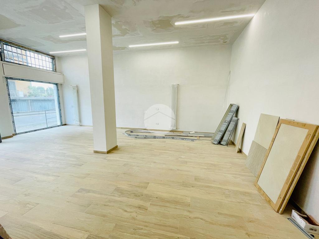 L'immobile, in fase di ristrutturazione, si presenta come un luminoso open space e con un disimpegno si accede ai due bagni, uno per il personale e uno per la clientela con accesso disabili.
